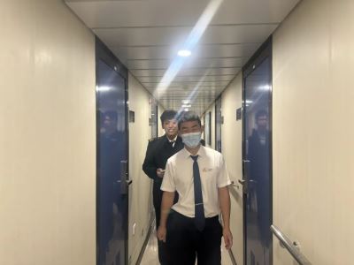 2023年9月26日上午 “祥龙岛” 轮缓缓驶入大连湾港客运码头,张伟林副校长、王洋主任、辅导员、航海学院教师以及我校2023级国际邮轮乘务专业同学,在船东中远海运客运“祥龙岛”轮领导的带领下有序登船。